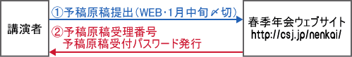 講演予稿原稿の提出方法はWEB投稿のみです。WEB投稿には、講演番号と受付番号が必要となります。(講演番号通知に記載しております)