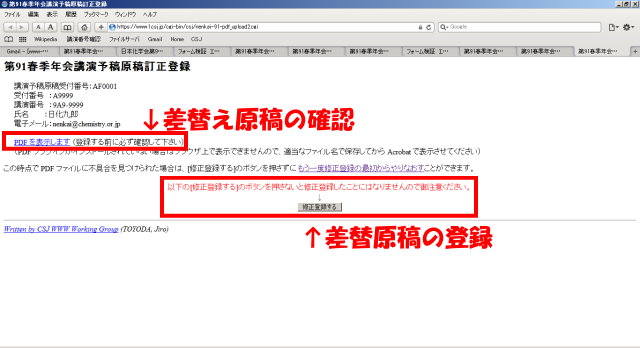 すでに登録した予稿原稿の PDF ファイルを新しい PDF ファイルに入れ替える